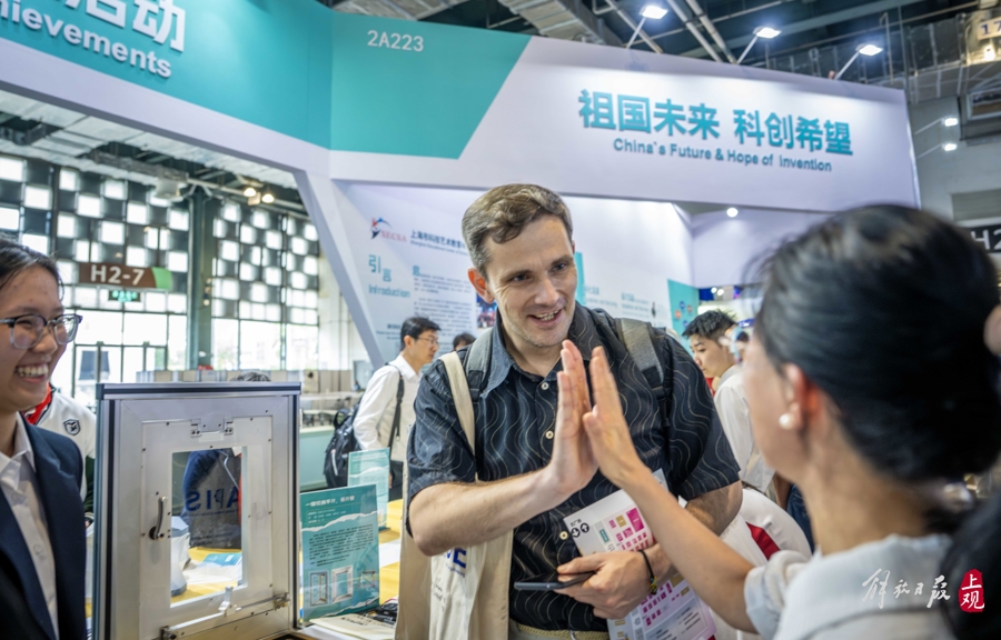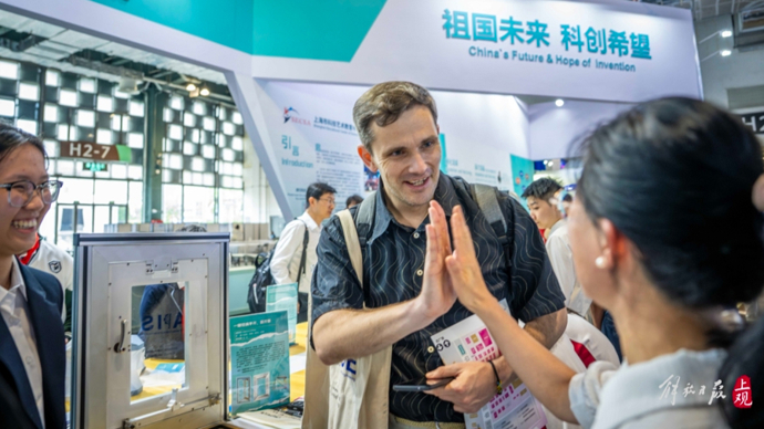 上海民办南模中学学生研发的一键切换平开、悬开窗吸引了乌克兰采购商驻足。