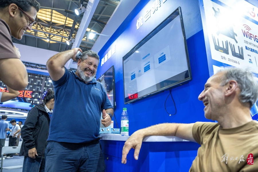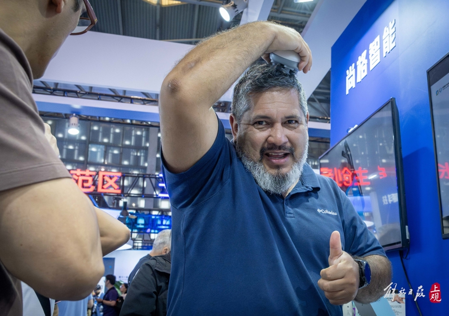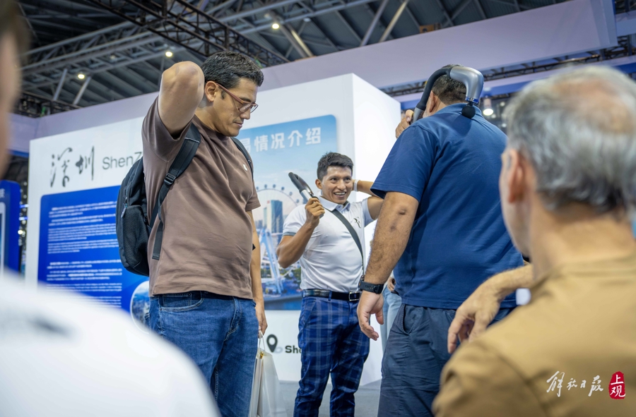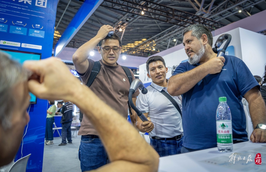 “中国的展会真是让人看花了眼,不光有尖端科技的中国制造机器人,还有这种将科技融入生活的便民产品,打算下订单为同事们多带些回去。”刚刚洽谈完机器人采购项目的西班牙采购商胡安和同事们正在把玩便携式智能按摩器。