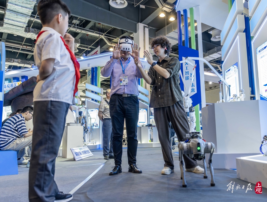来自华东理工大学的团队正在展示最新研发成果“面向四足控制的混合现实增强脑——机接口系统”。