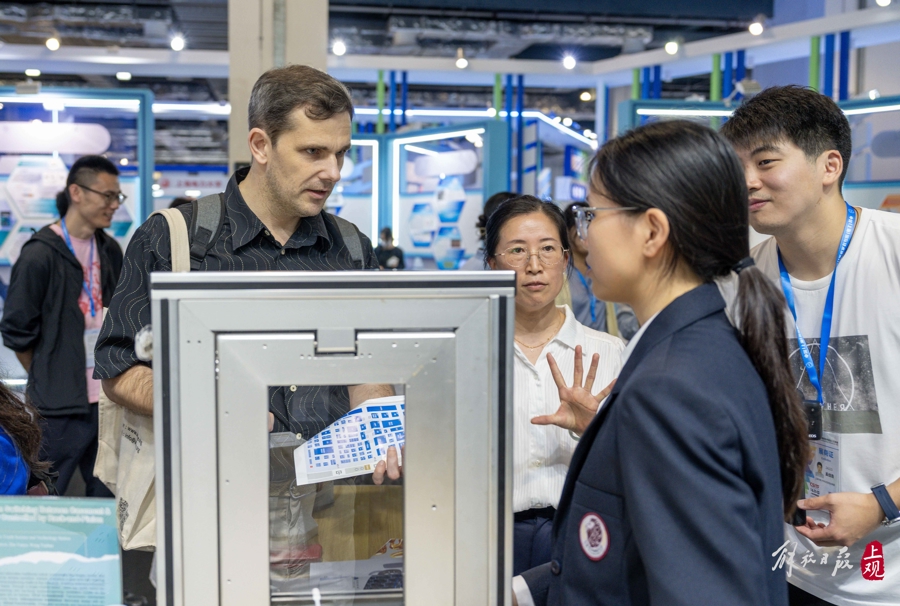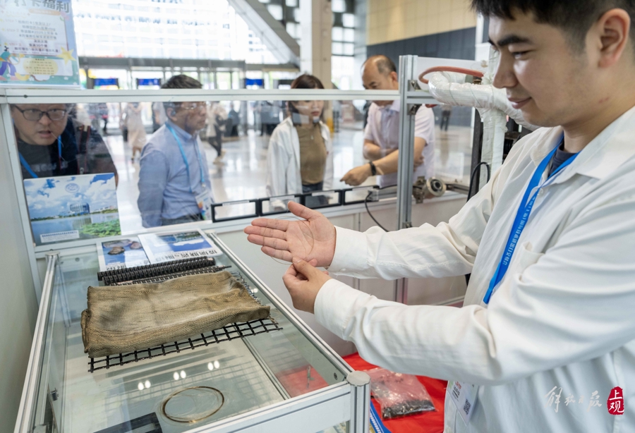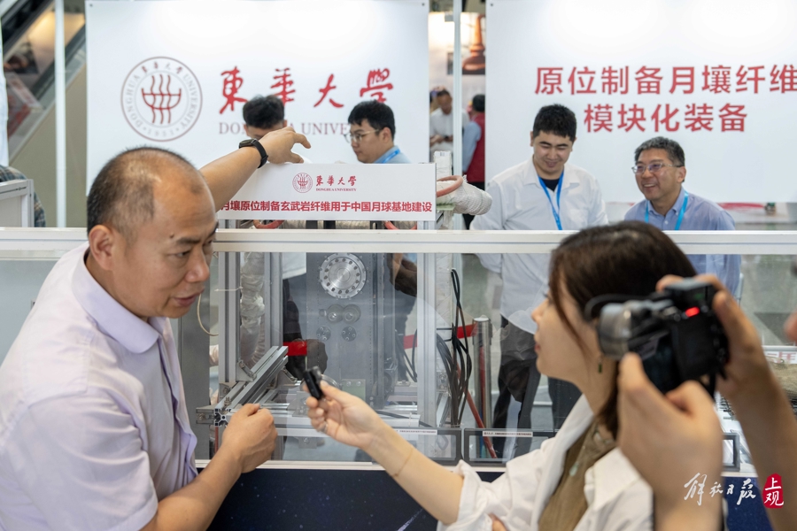 东华大学先进纤维材料全国重点实验室自主研发的“原位制备月壤纤维模块化装备”亮相第十一届中国(上海)国际技术进出口交易会。